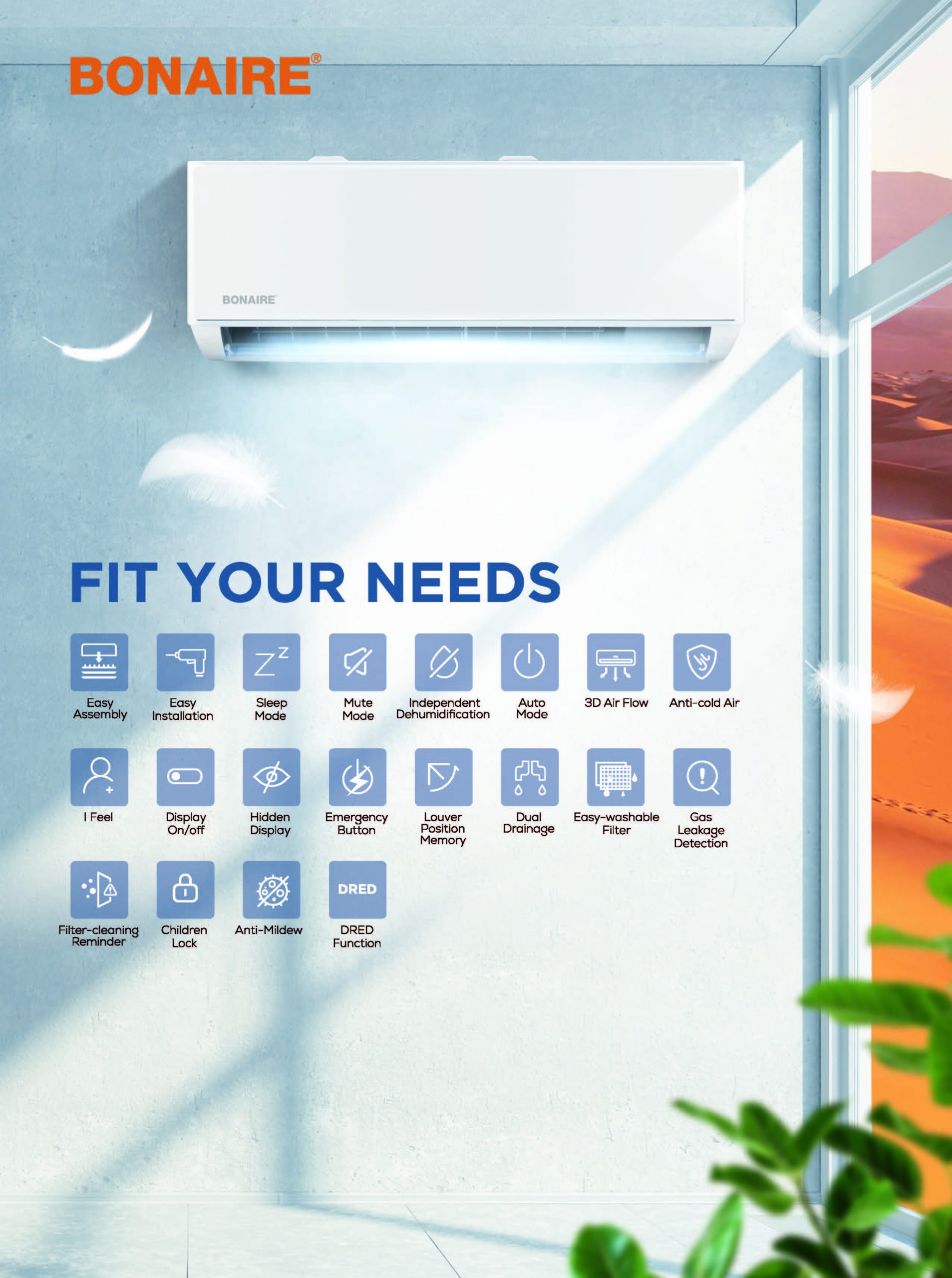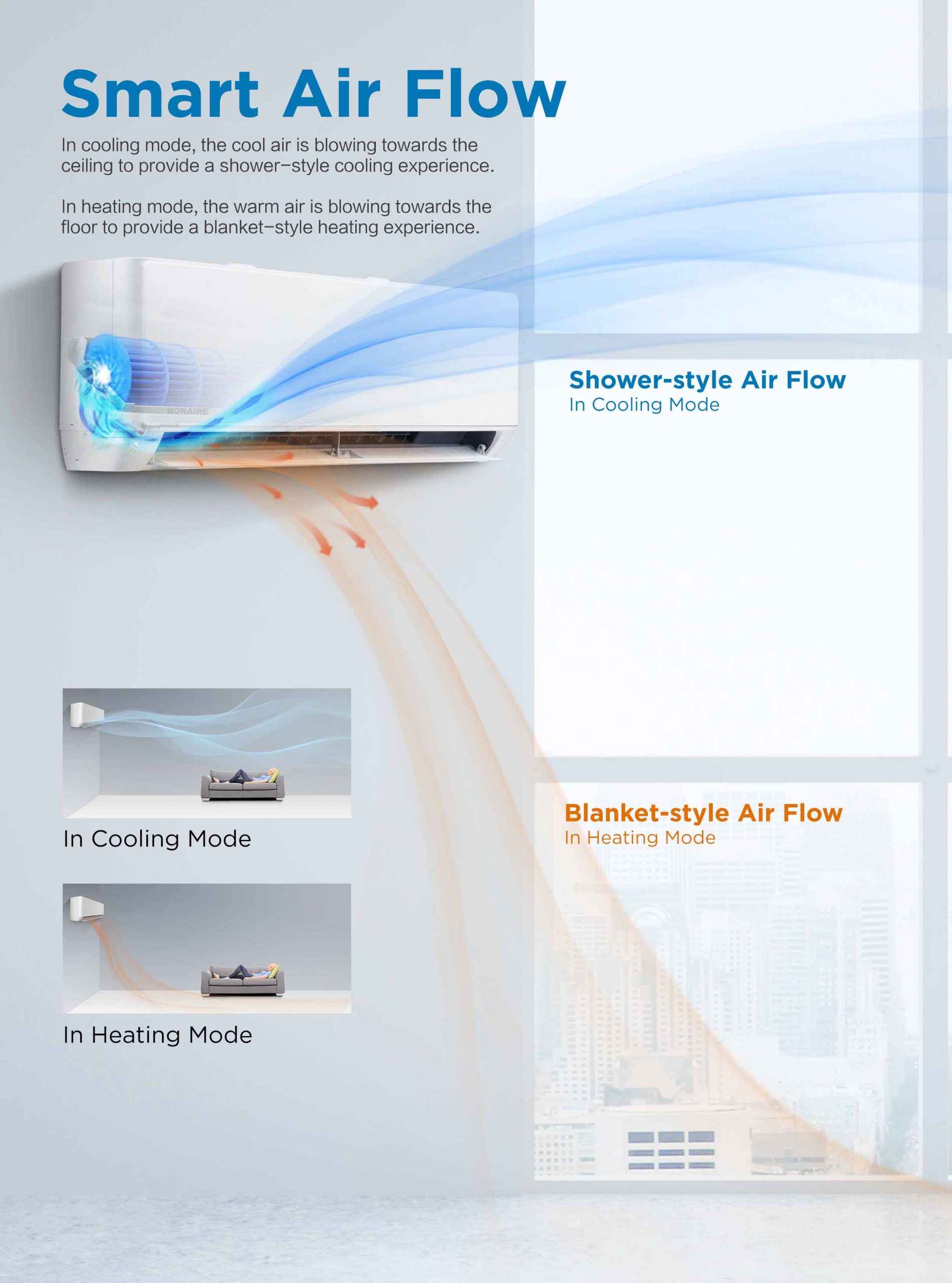 Wall mounted inverter Air conditioner – Bonaire Series 3 high efficiency